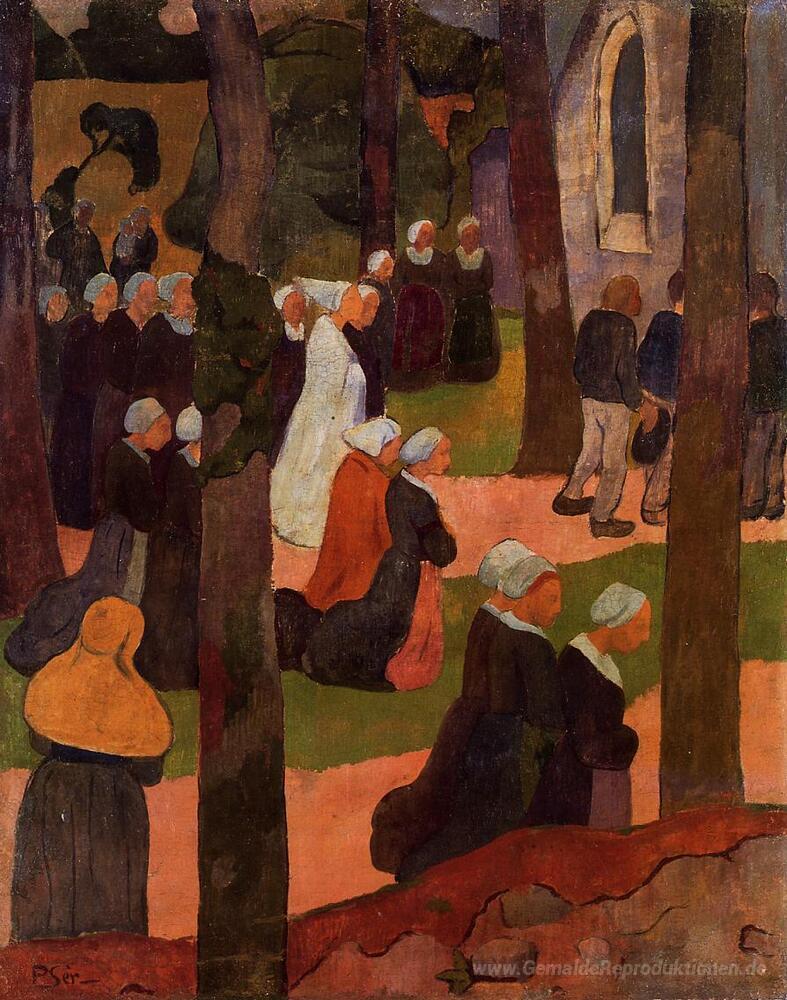 Wir bieten Ihnen eine handgefertigte Reproduktion auf Leinwand des berühmten Kunstwerks 'A Breton Sonntag' von Paul Serusier, aus dem Reproduktionsmuseum.
