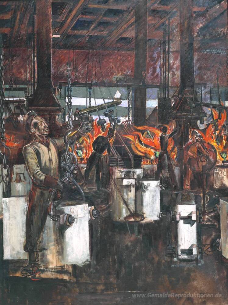 Wir bieten Ihnen eine handgefertigte Reproduktion auf Leinwand des berühmten Kunstwerks 'A Canadian War Fabrik' von Wyndham Lewis, aus dem Reproduktionsmuseum.