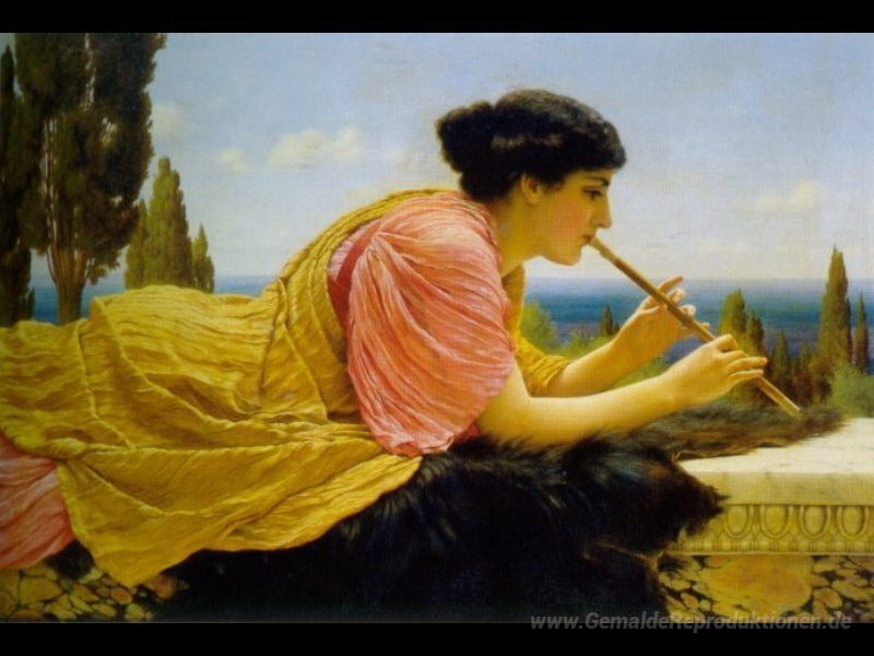 Die exquisite Farbpalette und die harmonischen Kompositionen von A Melody schaffen eine angenehme Atmosphäre, die Ihren Wohn- oder Arbeitsraum bereichert. Ob als auffälliger Blickfang oder als subtile Ergänzung Ihrer Einrichtung, dieses Gemälde von John William Godward transformiert jeden Raum in eine Oase der Inspiration und Eleganz. Lassen Sie sich von der Schönheit und dem Charme der Ölgemälde verzaubern und entdecken Sie, wie Kunst Ihre Lebensräume lebendig machen kann.