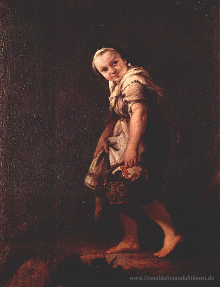 Wir bieten Ihnen eine handgefertigte Reproduktion auf Leinwand des berühmten Kunstwerks 'A Shepherd Mädchen mit einem Korb' von Pietro Longhi, aus dem Reproduktionsmuseum.