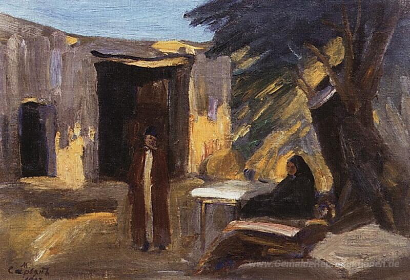 Wir bieten Ihnen eine handgefertigte Reproduktion auf Leinwand des berühmten Kunstwerks 'Abend im Garten' von Martiros Saryan, aus dem Reproduktionsmuseum.