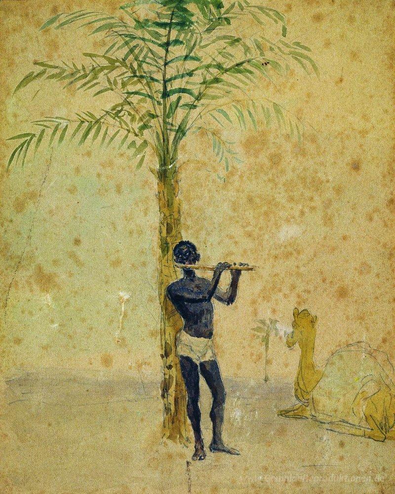 Wir bieten Ihnen eine handgefertigte Reproduktion auf Leinwand des berühmten Kunstwerks 'African Motiff' von Ilya Repin, aus dem Reproduktionsmuseum.