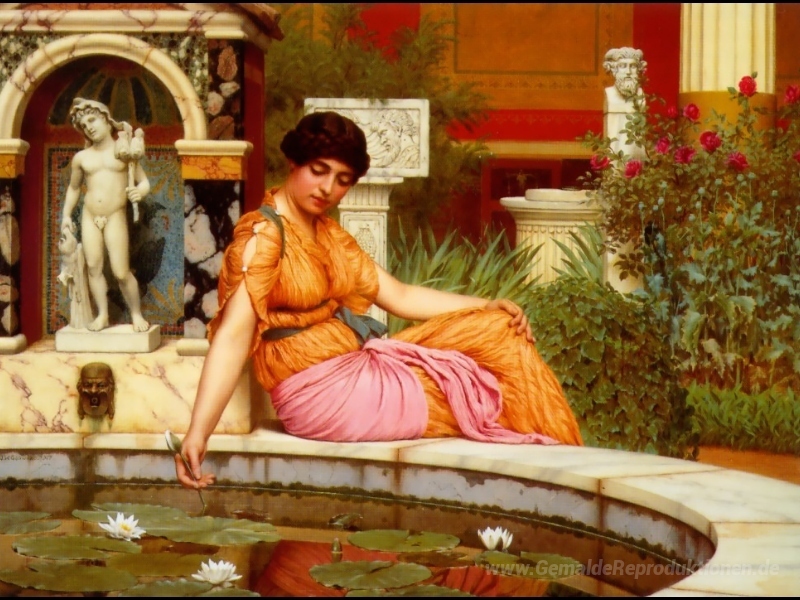 Wir bieten Ihnen eine handgefertigte Reproduktion auf Leinwand des berühmten Kunstwerks 'A-Lilien-Teich' von John William Godward, aus dem Reproduktionsmuseum.