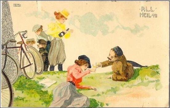Wir bieten Ihnen eine handgefertigte Reproduktion auf Leinwand des berühmten Kunstwerks 'Alle Heil' von Raphael Kirchner, aus dem Reproduktionsmuseum.