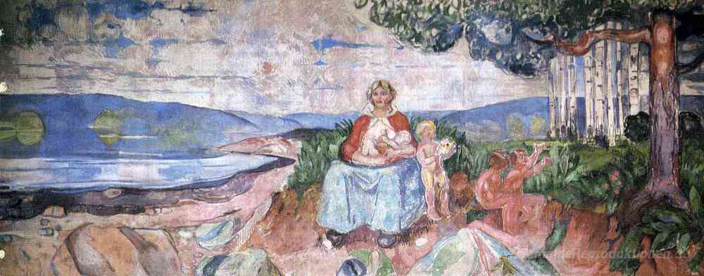 Wir bieten Ihnen eine handgefertigte Reproduktion auf Leinwand des berühmten Kunstwerks 'Alma Mater' von Edvard Munch, aus dem Reproduktionsmuseum.