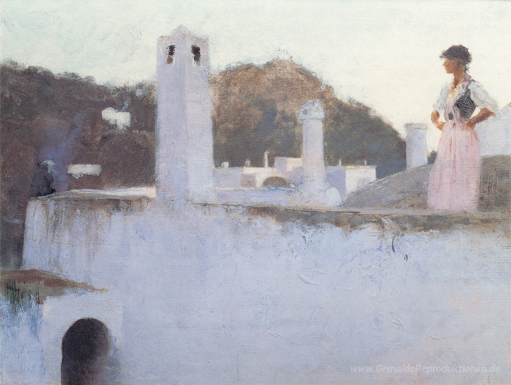 Die technische Finesse, die Sargent in diesem Werk demonstriert, kombiniert impressionistische Ansätze mit realistischer Detailtreue. Die lebhaften Farben und die dynamische Komposition sorgen dafür, dass das Gemälde jeden Raum mit einer eleganten, einladenden Atmosphäre erfüllt. Lassen Sie Ansicht von Capri zu einem Blickfang in Ihrem Zuhause werden und erleben Sie die transformative Kraft der Kunst!