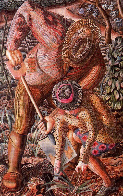 Wir bieten Ihnen eine handgefertigte Reproduktion auf Leinwand des berühmten Kunstwerks 'Apple-Sammler' von Stanley Spencer, aus dem Reproduktionsmuseum.