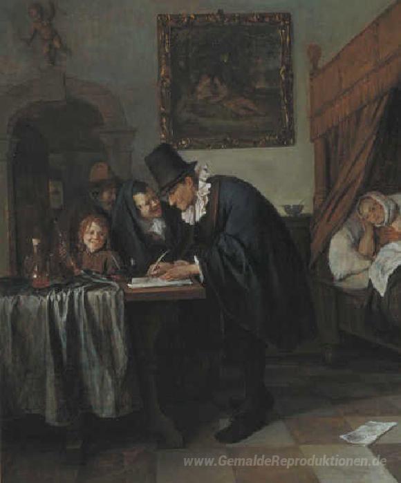 Wir bieten Ihnen eine handgefertigte Reproduktion auf Leinwand des berühmten Kunstwerks 'Arztbesuch' von Jan Steen, aus dem Reproduktionsmuseum.