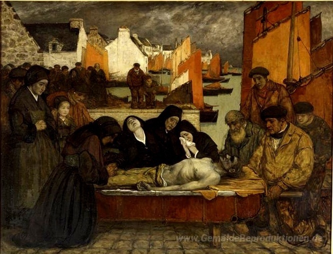Wir bieten Ihnen eine handgefertigte Reproduktion auf Leinwand des berühmten Kunstwerks 'Au pays de la mer. Douleur' von Charles Cottet, aus dem Reproduktionsmuseum.