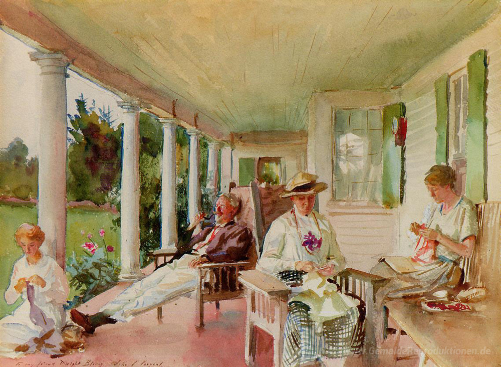 Wir bieten Ihnen eine handgefertigte Reproduktion auf Leinwand des berühmten Kunstwerks 'Auf der Veranda (Ironbound Island, Maine)' von John Singer Sargent, aus dem Reproduktionsmuseum.