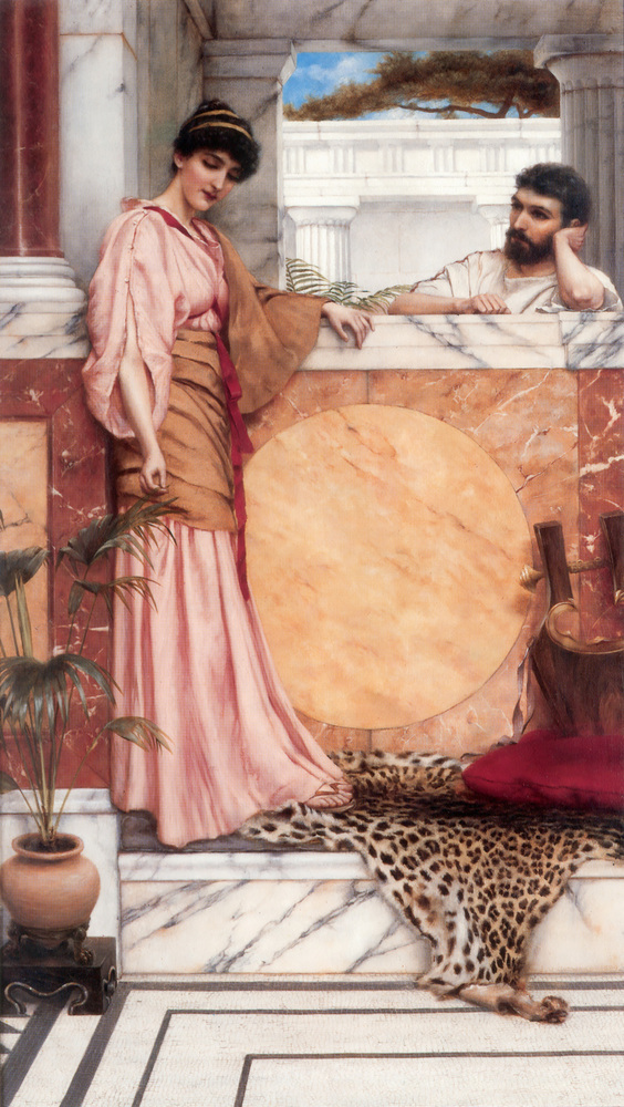 Wir bieten Ihnen eine handgefertigte Reproduktion auf Leinwand des berühmten Kunstwerks 'Auf eine Antwort warten' von John William Godward, aus dem Reproduktionsmuseum.