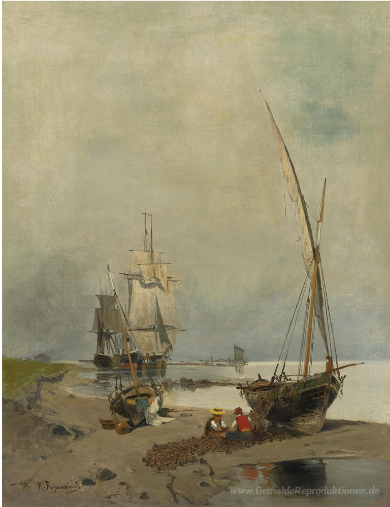 Willkommen in unserer exquisiten Kollektion von Ölgemälden, wo Kunst und Emotion auf unvergleichliche Weise verschmelzen. Jedes Werk erzählt die Geschichte seines Schöpfers, wie das fesselnde Gemälde Ausbessern der Netze von Konstantinos Volanakis. Volanakis, ein Meister des maritimen Genres, fängt in seinen Arbeiten die Schönheit und Dynamik des Meeres ein und lässt den Betrachter in die ruhige Atmosphäre der Küstenlandschaft eintauchen.