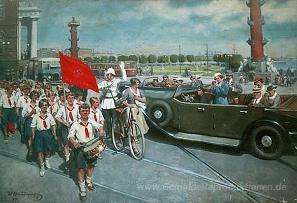 Wir bieten Ihnen eine handgefertigte Reproduktion auf Leinwand des berühmten Kunstwerks 'Ausländer in Leningrad' von Ivan Vladimirov, aus dem Reproduktionsmuseum.