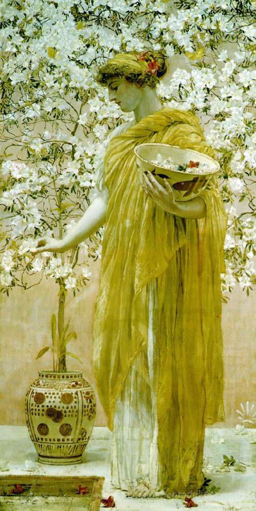 Wir bieten Ihnen eine handgefertigte Reproduktion auf Leinwand des berühmten Kunstwerks 'Azaleen' von Albert Joseph Moore, aus dem Reproduktionsmuseum.