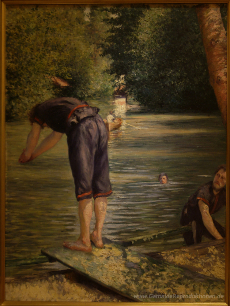 Wir bieten Ihnen eine handgefertigte Reproduktion auf Leinwand des berühmten Kunstwerks 'Badende am Ufer der Yerres' von Gustave Caillebotte, aus dem Reproduktionsmuseum.