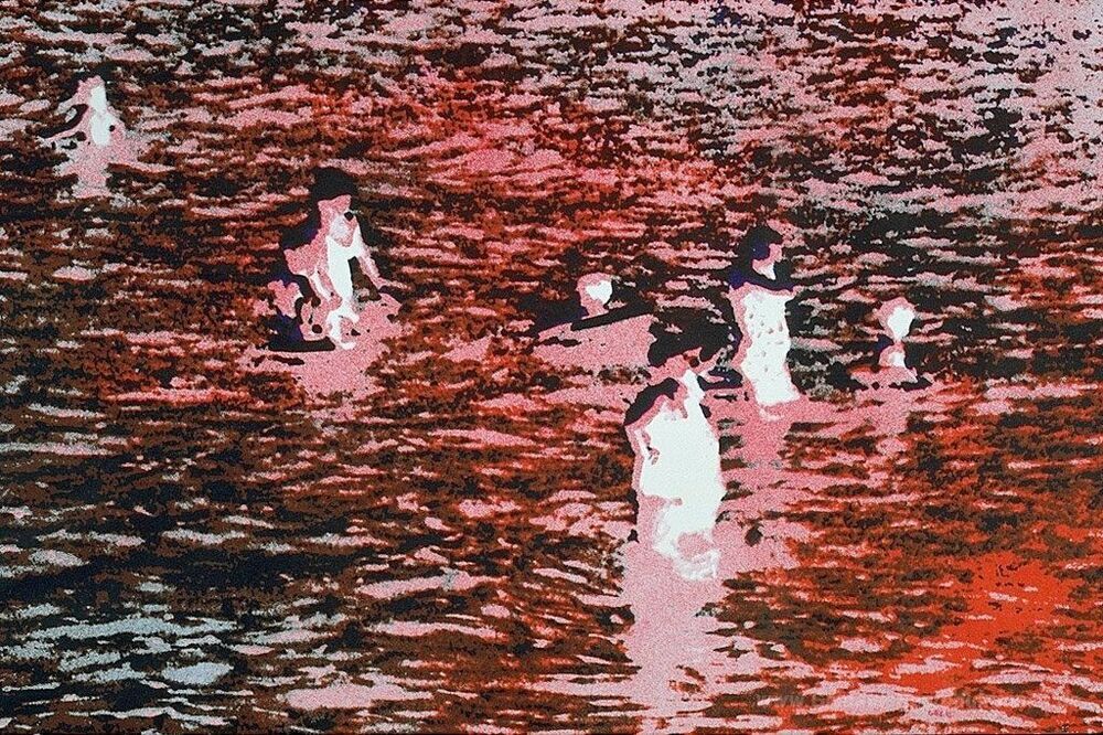 Wir bieten Ihnen eine handgefertigte Reproduktion auf Leinwand des berühmten Kunstwerks 'Badenden (A)' von Richard Hamilton, aus dem Reproduktionsmuseum.