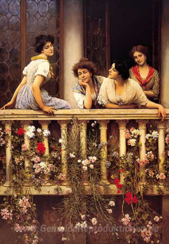 Wir bieten Ihnen eine handgefertigte Reproduktion auf Leinwand des berühmten Kunstwerks 'Balkon' von Eugene de Blaas, aus dem Reproduktionsmuseum.