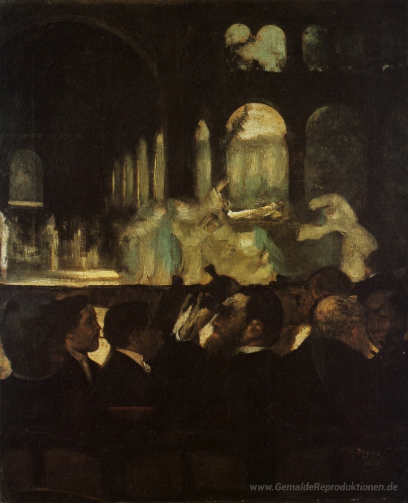 Wir bieten Ihnen eine handgefertigte Reproduktion auf Leinwand des berühmten Kunstwerks 'Ballett-Szene von Robert la Diable (Detail)' von Edgar Degas, aus dem Reproduktionsmuseum.