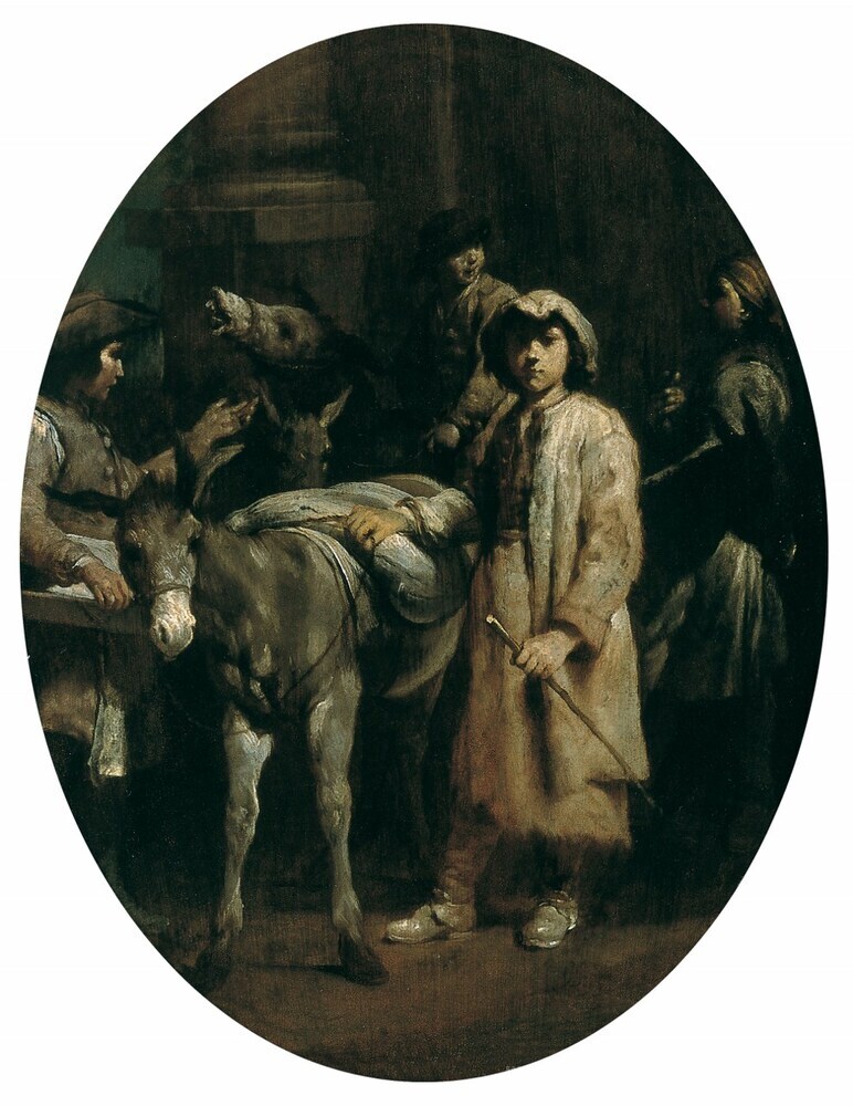 Wir bieten Ihnen eine handgefertigte Reproduktion auf Leinwand des berühmten Kunstwerks 'Bauern mit Esel' von Giuseppe Maria Crespi, aus dem Reproduktionsmuseum.