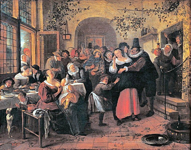 Wir bieten Ihnen eine handgefertigte Reproduktion auf Leinwand des berühmten Kunstwerks 'Bauernhochzeit' von Jan Steen, aus dem Reproduktionsmuseum.