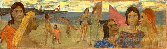 Wir bieten Ihnen eine handgefertigte Reproduktion auf Leinwand des berühmten Kunstwerks 'Beach Scene' von Grégoire Michonze, aus dem Reproduktionsmuseum.