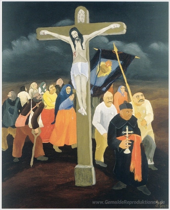 Wir bieten Ihnen eine handgefertigte Reproduktion auf Leinwand des berühmten Kunstwerks 'Beerdigung' von Ivan Generalic, aus dem Reproduktionsmuseum.
