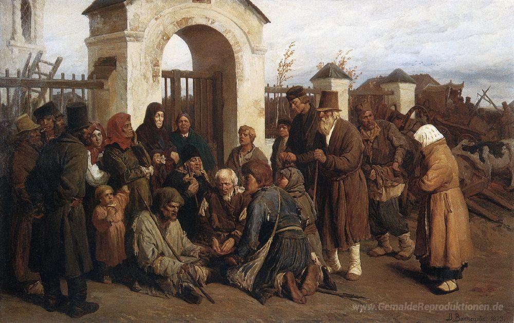 Wir bieten Ihnen eine handgefertigte Reproduktion auf Leinwand des berühmten Kunstwerks 'Beggars Sängerin (Pilger)' von Viktor Vasnetsov, aus dem Reproduktionsmuseum.