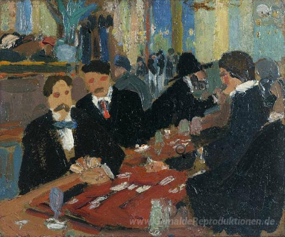 Wir bieten Ihnen eine handgefertigte Reproduktion auf Leinwand des berühmten Kunstwerks 'Bei Bistrot' von Amadeo de Souza-Cardoso, aus dem Reproduktionsmuseum.