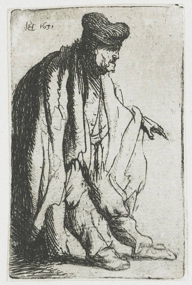 Wir bieten Ihnen eine handgefertigte Reproduktion auf Leinwand des berühmten Kunstwerks 'Bettler mit seiner linken Hand verlängert' von Rembrandt, aus dem Reproduktionsmuseum.