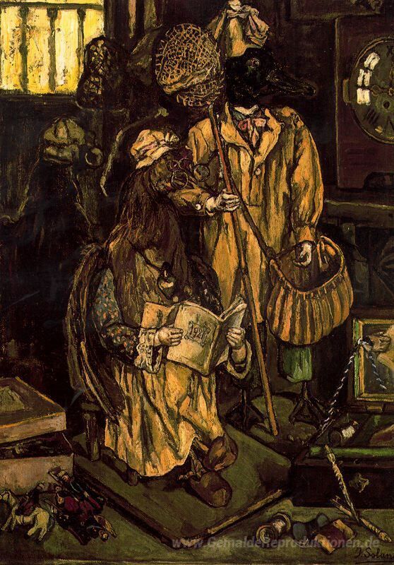 Wir bieten Ihnen eine handgefertigte Reproduktion auf Leinwand des berühmten Kunstwerks 'Birds' von Jose Gutierrez Solana, aus dem Reproduktionsmuseum.
