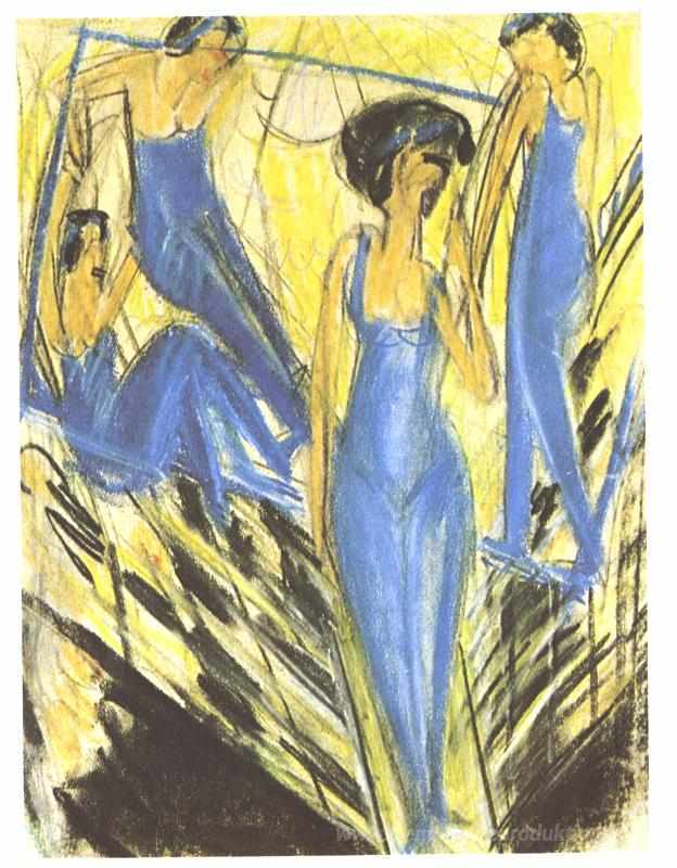 Wir bieten Ihnen eine handgefertigte Reproduktion auf Leinwand des berühmten Kunstwerks 'Blau gekleidet Künstler' von Ernst Ludwig Kirchner, aus dem Reproduktionsmuseum.