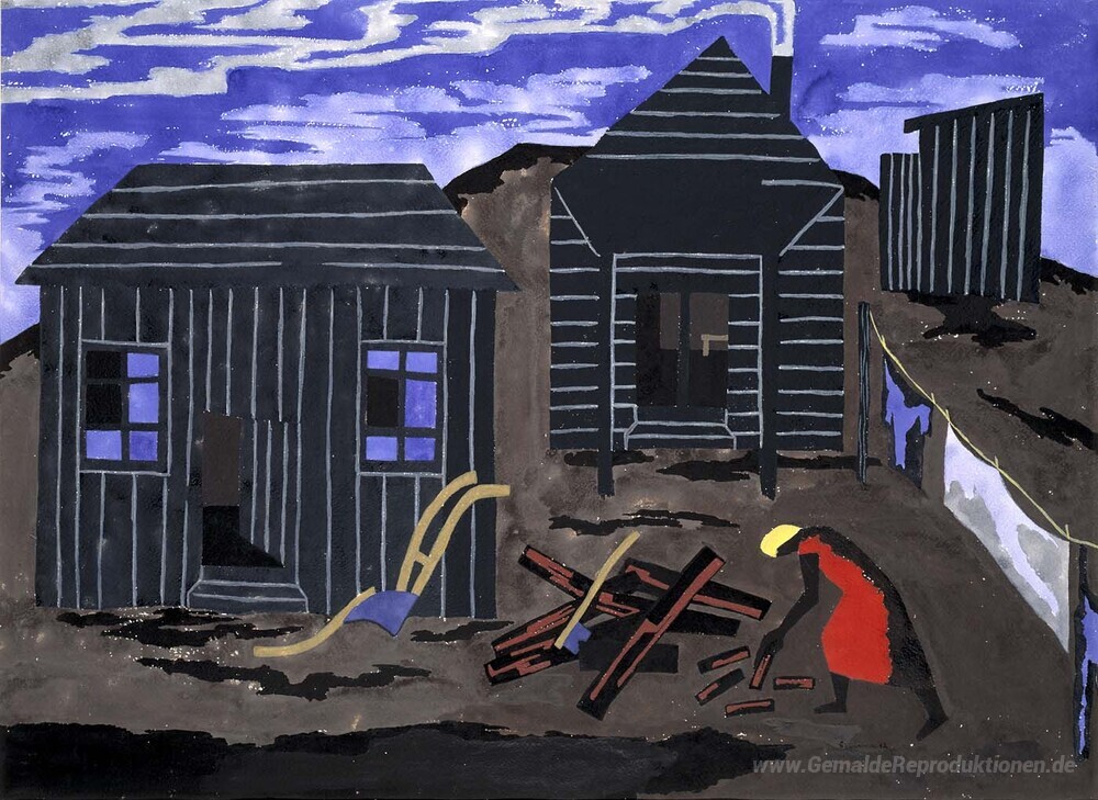Wir bieten Ihnen eine handgefertigte Reproduktion auf Leinwand des berühmten Kunstwerks 'Brennholz # 55' von Jacob Lawrence, aus dem Reproduktionsmuseum.