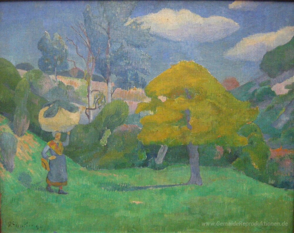 Wir bieten Ihnen eine handgefertigte Reproduktion auf Leinwand des berühmten Kunstwerks 'Breton Frau, die geht auf den Waschplatz' von Paul Serusier, aus dem Reproduktionsmuseum.