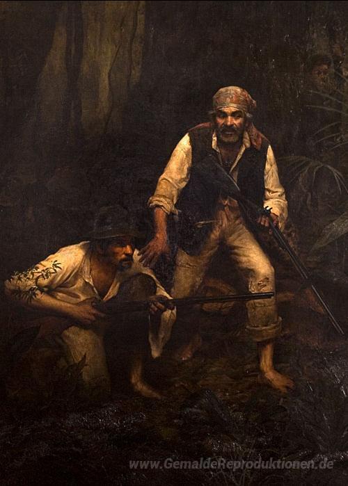 Wir bieten Ihnen eine handgefertigte Reproduktion auf Leinwand des berühmten Kunstwerks 'Caipiras Negaceando' von Jose Ferraz de Almeida Junior, aus dem Reproduktionsmuseum.
