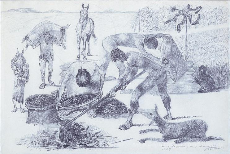 Wir bieten Ihnen eine handgefertigte Reproduktion auf Leinwand des berühmten Kunstwerks 'Cena ländlichen' von Candido Portinari, aus dem Reproduktionsmuseum.