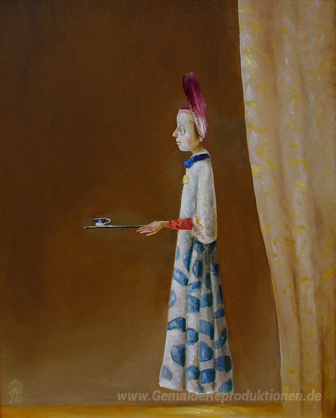 Wir bieten Ihnen eine handgefertigte Reproduktion auf Leinwand des berühmten Kunstwerks 'Charakter mit Cup' von Stefan Caltia, aus dem Reproduktionsmuseum.