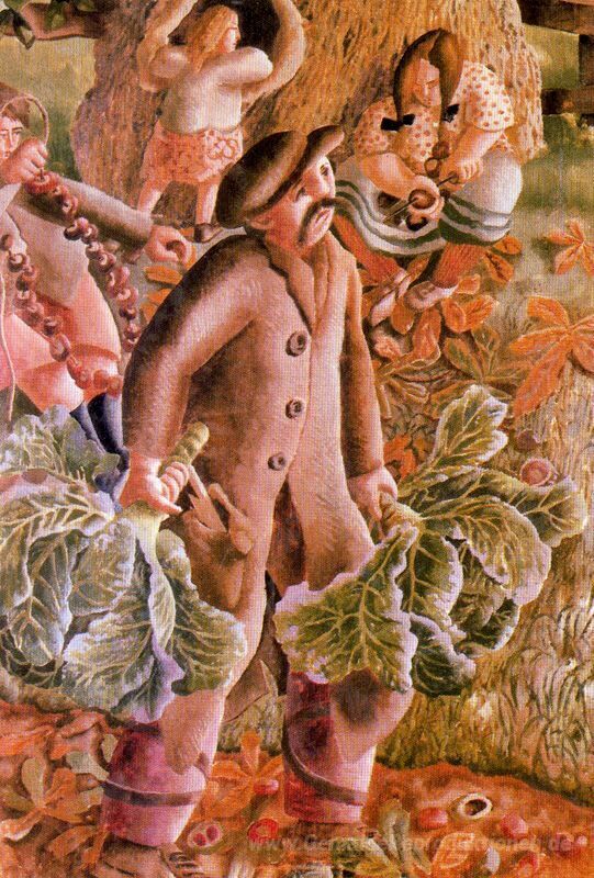 Wir bieten Ihnen eine handgefertigte Reproduktion auf Leinwand des berühmten Kunstwerks 'Chestnuts' von Stanley Spencer, aus dem Reproduktionsmuseum.