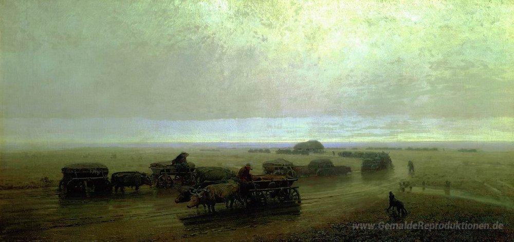 Wir bieten Ihnen eine handgefertigte Reproduktion auf Leinwand des berühmten Kunstwerks 'Chumaks Pfad in Mariupol' von Arkhip Kuindzhi, aus dem Reproduktionsmuseum.