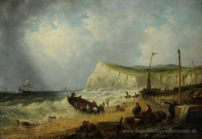 Wir bieten Ihnen eine handgefertigte Reproduktion auf Leinwand des berühmten Kunstwerks 'Coast Scene' von James Webb , aus dem Reproduktionsmuseum.