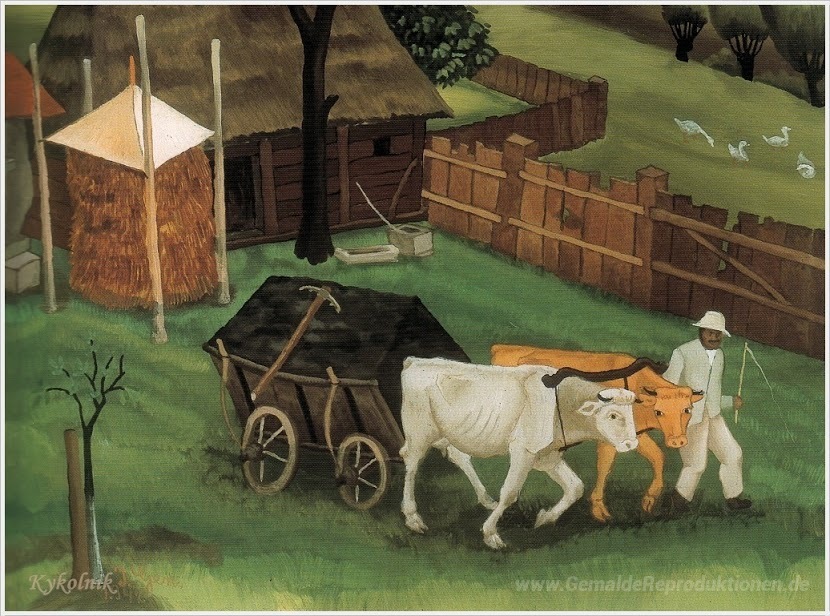 Wir bieten Ihnen eine handgefertigte Reproduktion auf Leinwand des berühmten Kunstwerks 'Düngen' von Ivan Generalic, aus dem Reproduktionsmuseum.
