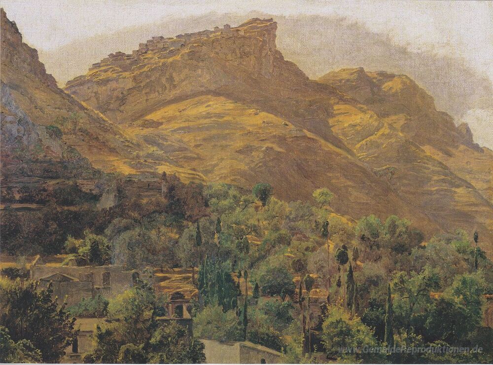 Wir bieten Ihnen eine handgefertigte Reproduktion auf Leinwand des berühmten Kunstwerks 'Da oben in der Bergstadt Mola in Taormina' von Ferdinand Georg Waldmüller, aus dem Reproduktionsmuseum.