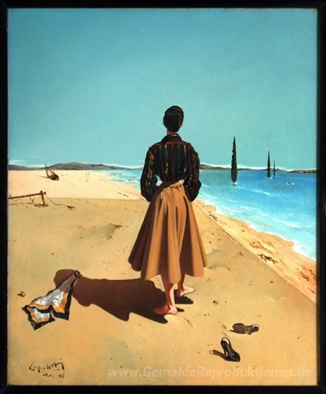 Wir bieten Ihnen eine handgefertigte Reproduktion auf Leinwand des berühmten Kunstwerks 'Dama en la playa' von Jose Manuel Capuletti, aus dem Reproduktionsmuseum.