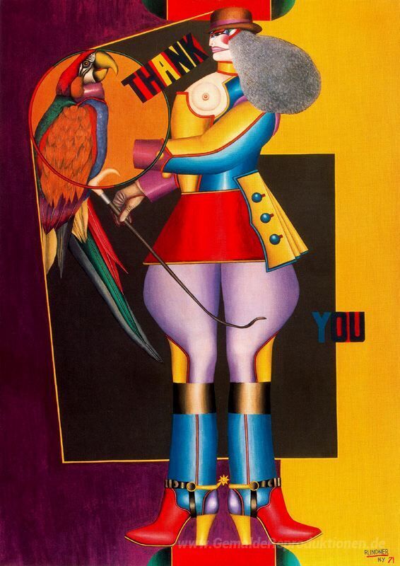 Wir bieten Ihnen eine handgefertigte Reproduktion auf Leinwand des berühmten Kunstwerks 'Danke' von Richard Lindner, aus dem Reproduktionsmuseum.