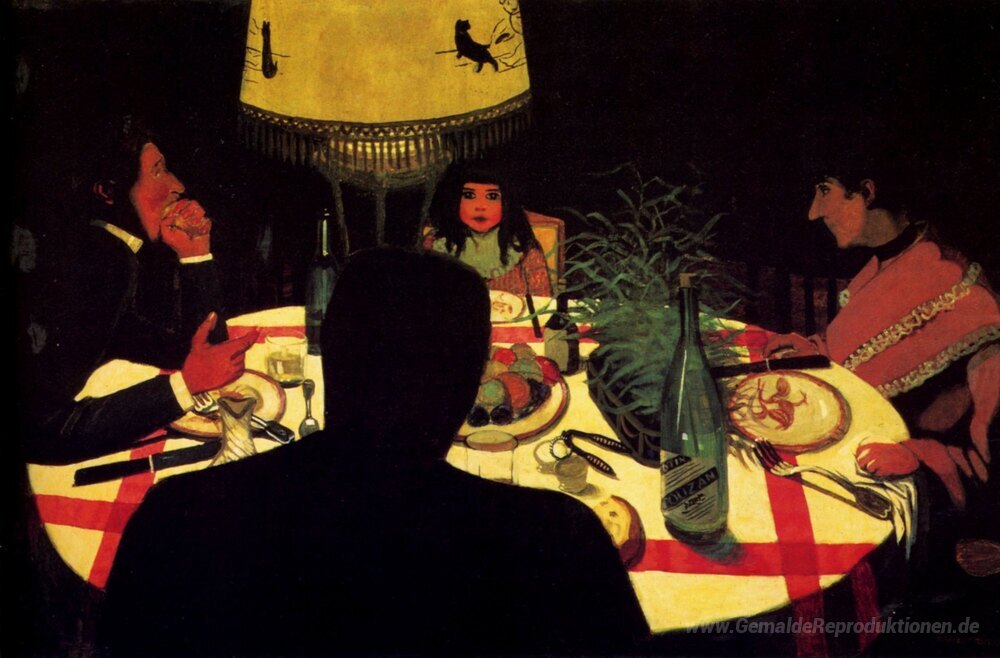 Wir bieten Ihnen eine handgefertigte Reproduktion auf Leinwand des berühmten Kunstwerks 'Das Abendessen, Wirkung der Lampe' von Felix Vallotton , aus dem Reproduktionsmuseum.