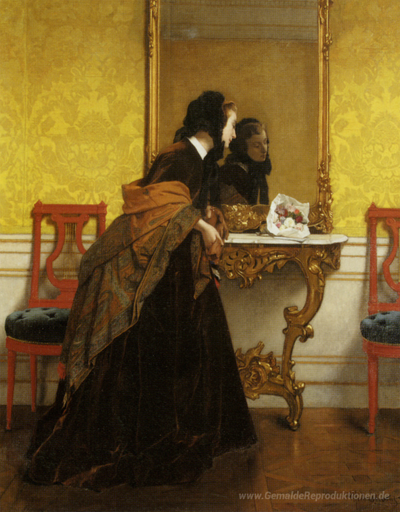 Wir bieten Ihnen eine handgefertigte Reproduktion auf Leinwand des berühmten Kunstwerks 'Das Bouquet' von Alfred Stevens, aus dem Reproduktionsmuseum.