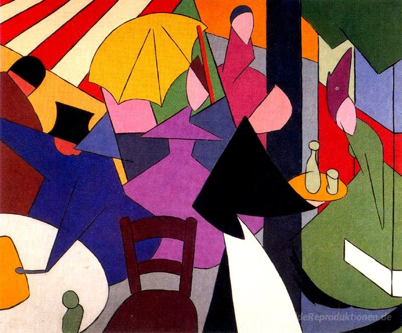 Wir bieten Ihnen eine handgefertigte Reproduktion auf Leinwand des berühmten Kunstwerks 'Das Cafe' von Alberto Magnelli, aus dem Reproduktionsmuseum.