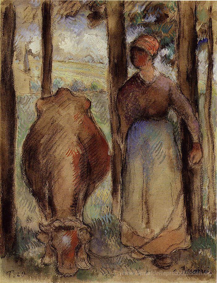 Wir bieten Ihnen eine handgefertigte Reproduktion auf Leinwand des berühmten Kunstwerks 'Das Cowherd' von Camille Pissarro, aus dem Reproduktionsmuseum.