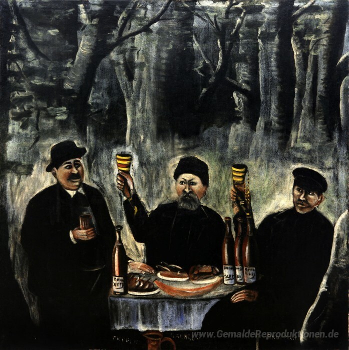 Wir bieten Ihnen eine handgefertigte Reproduktion auf Leinwand des berühmten Kunstwerks 'Das Fest der Bürgerinnen und Bürger in einem Wald' von Niko Pirosmani, aus dem Reproduktionsmuseum.