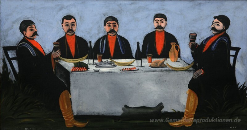 Wir bieten Ihnen eine handgefertigte Reproduktion auf Leinwand des berühmten Kunstwerks 'Das Fest der Five Princes' von Niko Pirosmani, aus dem Reproduktionsmuseum.