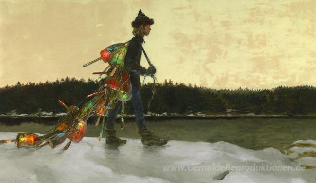 Wir bieten Ihnen eine handgefertigte Reproduktion auf Leinwand des berühmten Kunstwerks 'Das Festland' von Jamie Wyeth, aus dem Reproduktionsmuseum.